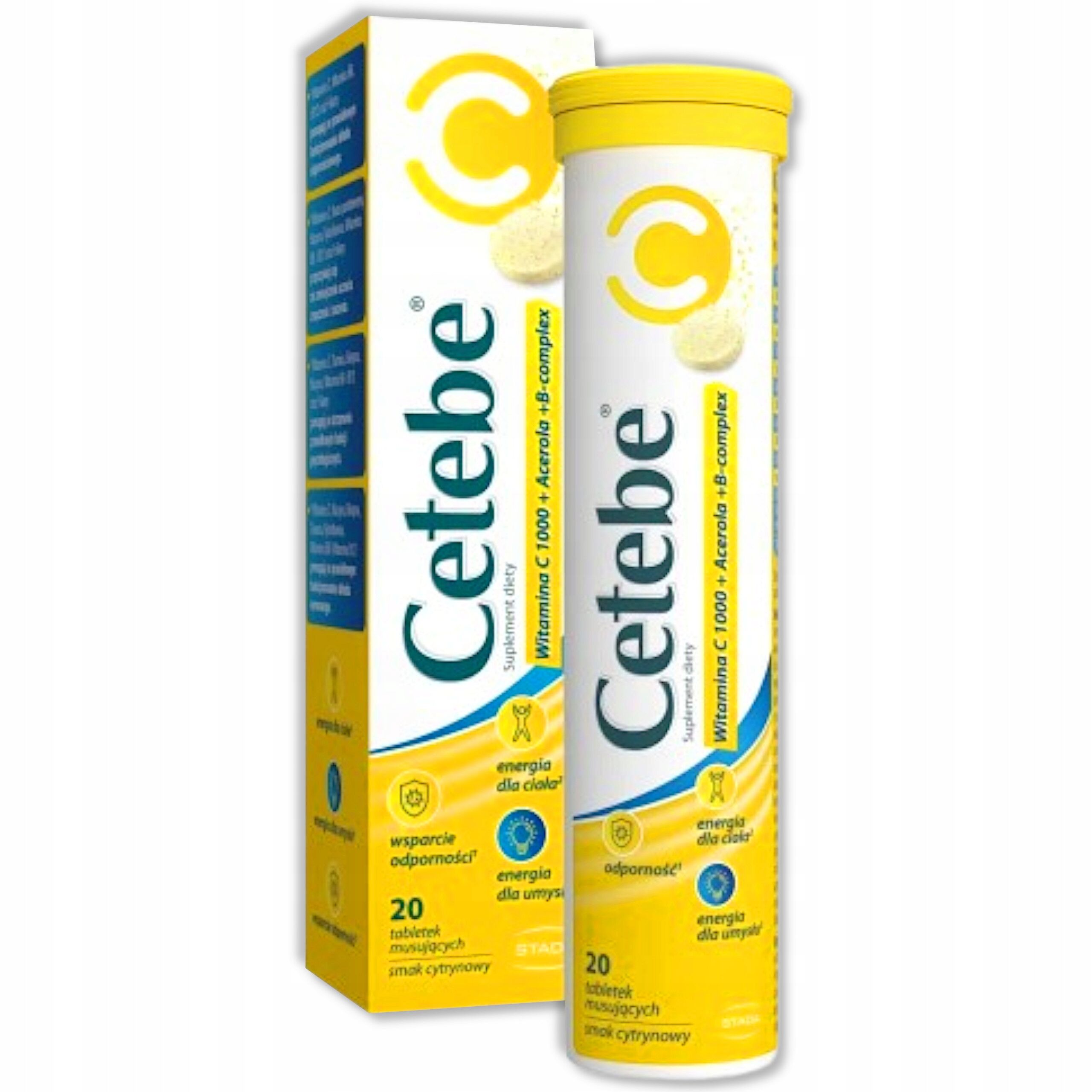 Cetebe Witamina C 1000 + Acerola + B-complex to suplement diety w postaci tabletek musujących, przeznaczony do codziennej suplementacji diety osób dorosłych.