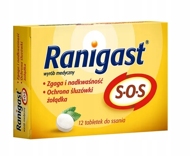Ranigast S-O-S jest wskazany do stosowania w celu łagodzenia objawów refluksu żołądkowo-przełykowego takich jak: zgaga oraz ból w nadbrzuszu. Umożliwia on wyrównanie kwasoty soku żołądkowego, zapobiegając wystąpieniu uczucia pieczenia, bólu w nadbrzuszu i niestrawności. Ranigast S-O-S jest skuteczny niezależnie od zasadniczej przyczyny problemu. Ponadto można stosować go wspomagająco u pacjentów z zapaleniem żołądka. Zawiera on połączenie kilku substancji działających synergistycznie w środowisku żołądka. Szczególny skład preparatu zawierającego: alginian sodu, kwas alginowy oraz wodorowęglan umożliwia jego szybkie działanie.