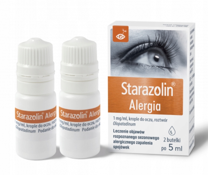 Lek Starazolin Alergia jest przeznaczony do leczenia objawów ocznych (świąd, łzawienie, zaczerwienienie, obrzęk powiek i spojówek) u pacjentów z rozpoznanym sezonowym alergicznym zapaleniem spojówek. Lek może być stosowany tylko u osób dorosłych. Alergiczne zapalenie spojówek. Niektóre substancje (alergeny), takie jak pyłki roślin, kurz domowy lub sierść zwierząt mogą powodować reakcje uczuleniowe, objawiające się świądem, zaczerwienieniem, łzawieniem, a także obrzękiem powierzchni oka (bez zaburzeń widzenia). Objawy te występują nagle, mają ostry i przemijający przebieg. Często towarzyszą im wodnisty katar i kichanie lub swędzenie w nosie i w uszach.W przypadku współistnienia objawów ze strony nosa (katar, kichanie, świąd) podanie leku Starazolin Alergia do oka zmniejsza ich nasilenie.